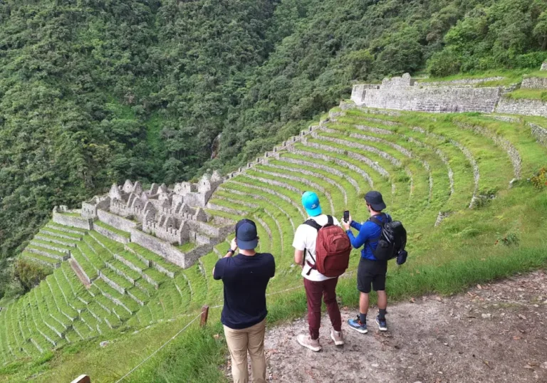 00.00 a.m. Train Expeditions from Ollantaytambo to Km. 104 (Starting point of the walk) which takes about one hours 45 minuts. At Km 104 we will get off the train and pass the Inca Trail checkpoint where we will see our first archaeological center called Chachabamba, at 2,170 m or 7,170 ft. Our hike continues gently upward for approximately four hours until we reach the beautifully situated Inca complex of Winay Wayna at 2,650 m or 8,700 ft, which is named after an orchid and means “Forever Young” in Quechua, where we stop to eat a nutritious and plentiful.
