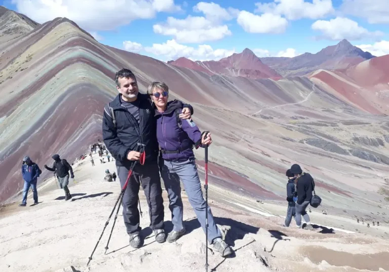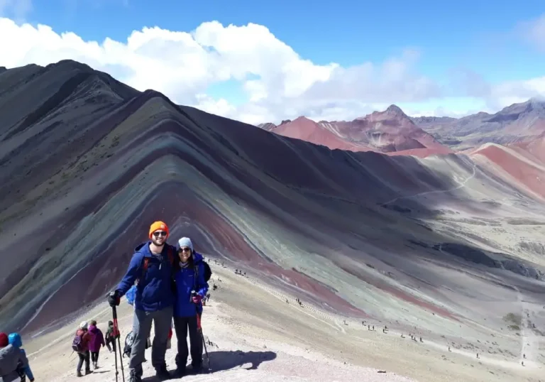 The adventure begins very early at 04:30 am, and then we go by car for an average of 3 hours south of Cusco. Then we will go to the picturesque town of Pitumarca, south of the city of Cusco. Here we enjoy a delicious Ondean breakfast in local Restaurant and we will buy some of the necessary items for our walk, such as water, snacks, etc. Afterwards, we will continue on the road until we reach a dirt road that crosses the mountains and passes through traditional villages and fertile valleys. After this short stop we continue our trip where we observe the multicolored landscapes and the crops that are mixed between the mysterious and snow-capped mountains. See Andean animals such as the llama, alpaca, sheep, vicuñas and also the deep valleys. If it is a clear day, we will be able to see the snowy Ausangate, which is the highest in the province of Cusco at 6,384 masl or 20,945 feet. We arrive at the picturesque town of Chillca which is our starting point for the trek. We will start trekking from 4,350 masl (14,271 ft) and it will take around 1.5 hours to reach the top. This walk is short and gradual, but due to the height we will go slowly and enjoy the view of valleys and mountains, and also herds of llamas and alpacas. We will finish the climb when we reach the top of Cerro Colorado, which is 4,980 meters above sea level (16,338 feet). This incredible mountain has beautiful colors including red, orange, yellow, green and purple which are various minerals. You have the option to climb another 50 meters (164 feet) up to take photos with a panoramic view, and when we are ready we will return the same way. We will go down for an average of 1 hour and we will arrive at the vehicle to return to Cusco. On the way we will have lunch at the local restaurant, and continue to Cusco where we will drop you off at your hotel around 4:30 p.m.