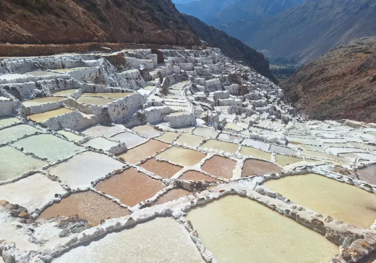During our tour we will observe impressive landscapes such as: the snow peaked mountains of Salkantay and Veronica and the plains of Maras – where much of the food for our Cusco population comes from. First we will visit the Archaeological Centre of Chinchero and textil center, Archaeological Centre of Moray, this place is more known as a centre of experimentation and investigation of agricultural products in the Inca empire. They are circular terraces that measure 150 meters deep. Continuing with our tour we will visit the town of Maras, where you can appreciate the magnificent colonial architecture in the local constructions. Finally, we visit the salt mines (Salineras) where there are more than 3200 wells of Salt. The local people still continue to extract the same salt that the Incas extracted for human consumption.