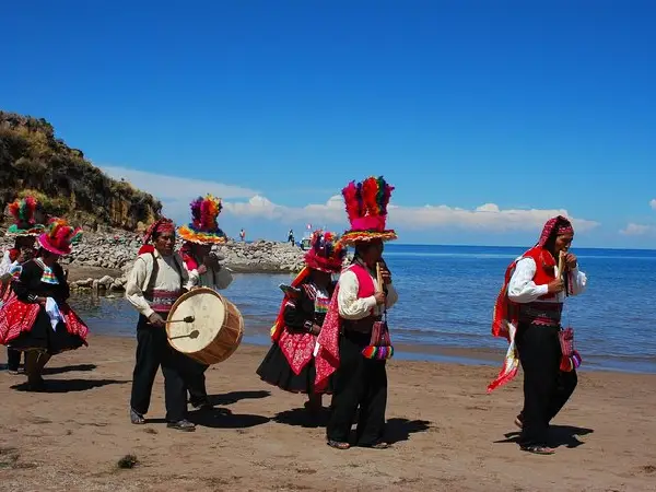 After breakfast at the hotel, transfer from the hotel to Port of Puno, from where we will board a small boats to enter Lake Titicaca, the highest navigable lake in the world. In this tour we will visit first, the Floating Islands of the Uros, taking a comfortable boat from the port of Puno (30 minutes), after visiting 2 floating islands in the Uros, we will continue with the trip to the island of Amantani (2 ½ hours), where we will arrive by noon, upon our arrival we will be cordially received by local families. Accompanied by the families we will walk (30 mins uphill) to the local houses of Amantani, where we will have lunch typical Andean food of the island. After settling in and resting, we will hike to the top of the island to see the Inca ceremonial temples «Pachamama and Pachatata» which is at 4400masl (14,432). After appreciating the beautiful views of the lake and its splendor, we will wait to see one of the most beautiful sunsets in the world. Finally we will return to have dinner in the local houses, during the night the families will organize a welcome party (Optional) where we will be able to dance and wear the local clothing, all this accompanied by local musicians.